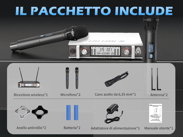 El Talomen K120 es un sistema de micrófono inalámbrico UHF de doble canal. Incluye un receptor con antena personalizada y dos micrófonos dinámicos con sintonización profesional. Es perfecto para servicios religiosos, noches de karaoke, fiestas en casa y mucho más.