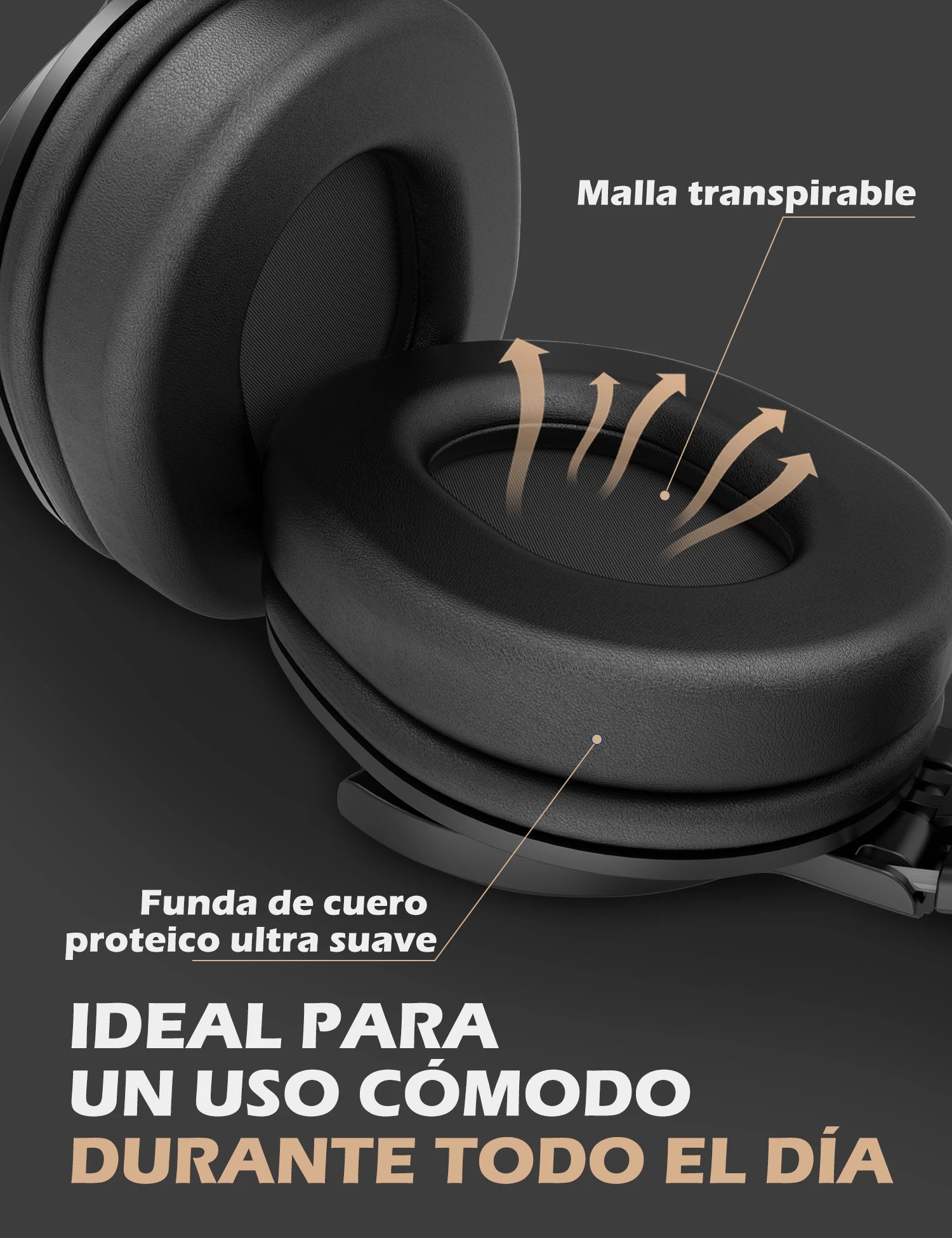 La cubierta de cuero proteico ultra suave y la malla transpirable se adaptan a la ergonomía y envuelven suavemente las orejas, de modo que no se sientan incómodas incluso si usa los auriculares W50x todo el día. El ajuste perfecto no solo minimiza la presión y la fuga de sonido, sino que también reduce eficazmente el ruido ambiental.
