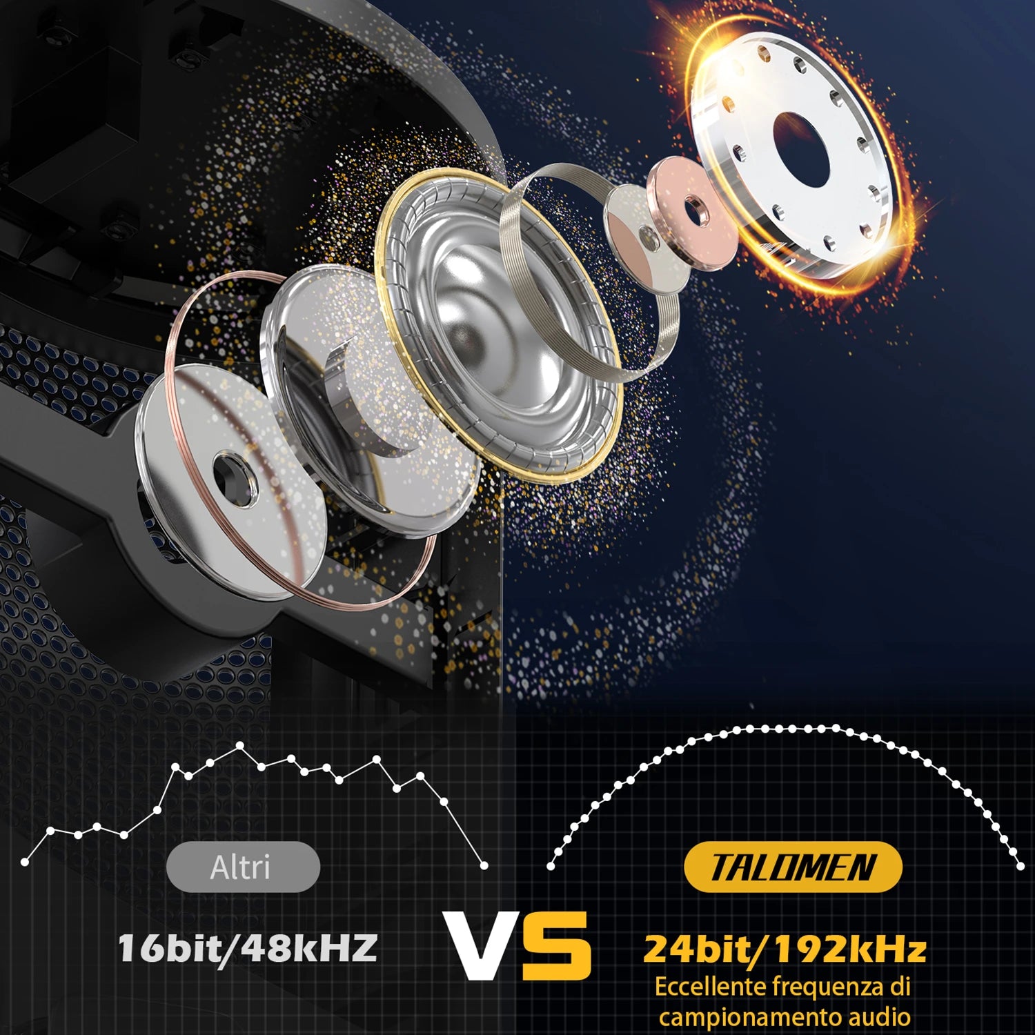 Rispetto ad altri prodotti dello stesso tipo, il microfono USB Talomen Eyas ha una frequenza di campionamento della qualità del suono migliore, che può realmente migliorare la qualità del suono trasmesso.