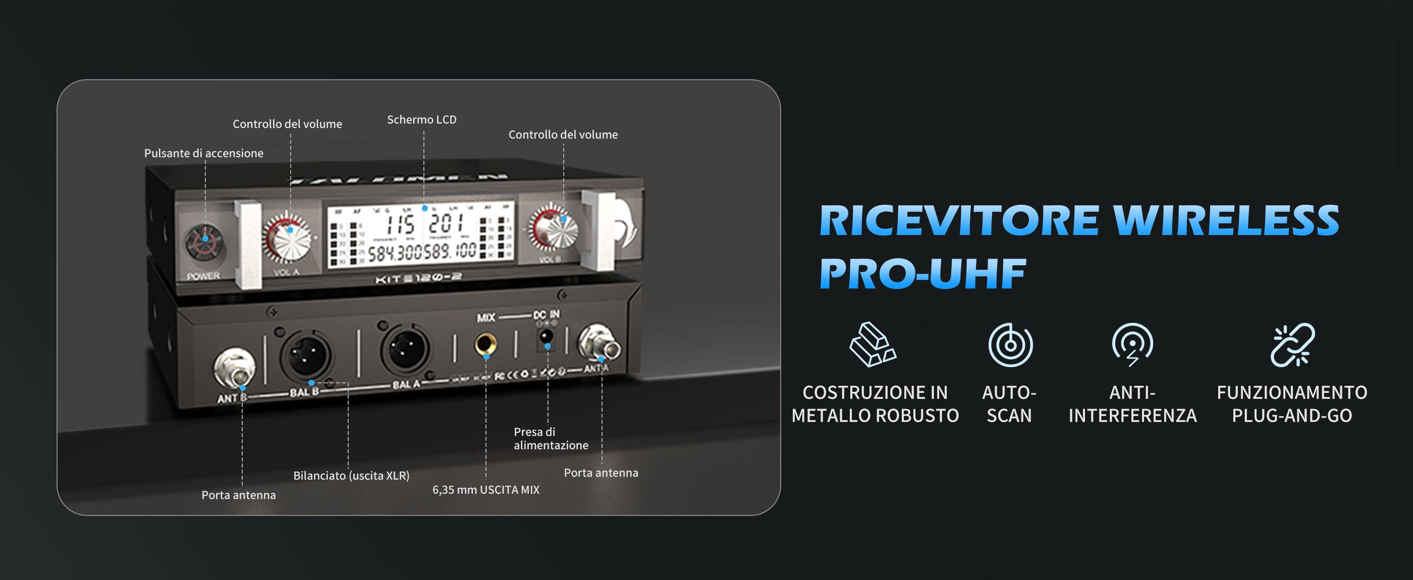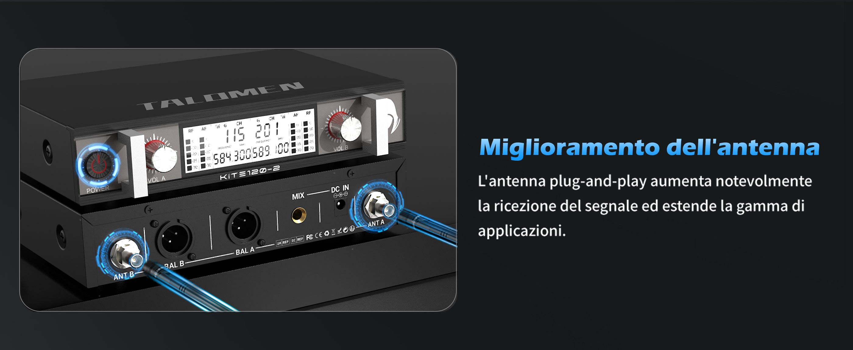 Talomen K120 | Sistema microfonico wireless UHF professionale