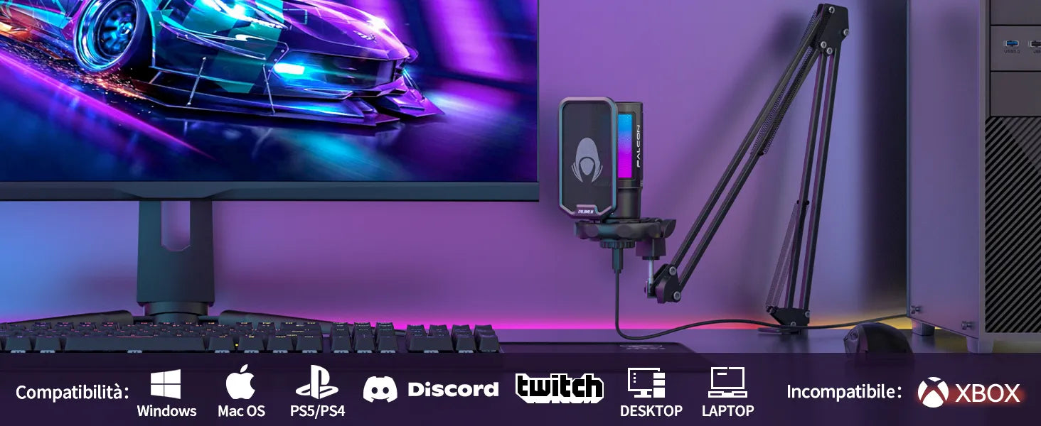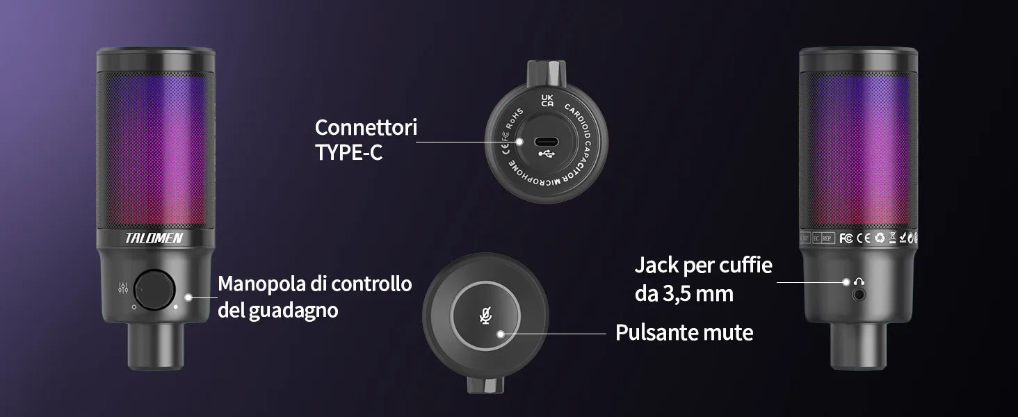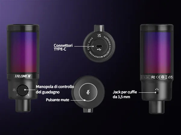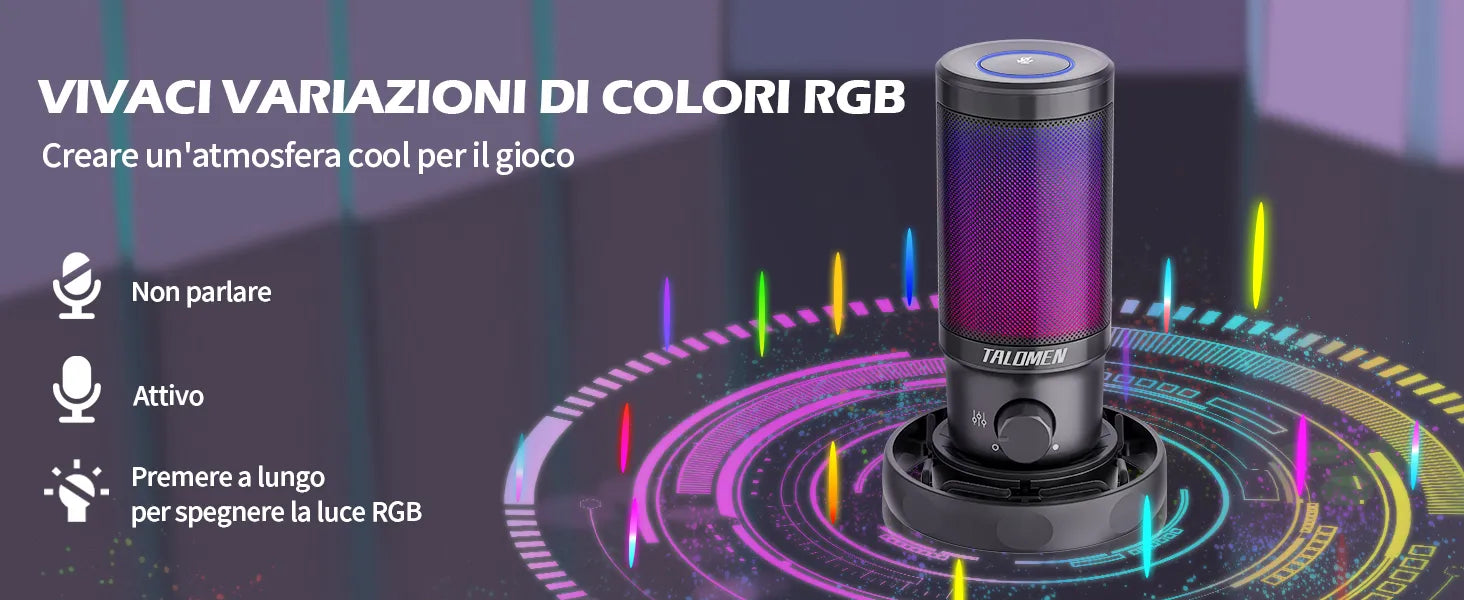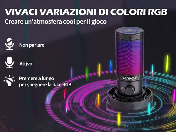 Il microfono da gioco USB Talomen è dotato di luci RGB luminose per migliorare l'atmosfera di gioco; può anche catturare la tua voce in un ambiente rumoroso, comunicare in modo più efficiente e aumentare il divertimento del gioco.